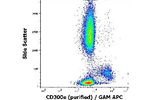 The mouse monoclonal antibody UP-H2 recognizes an extracellular epitope on CD300e / IREM-2, a 32 kDa glycoprotein expressed by mature monocytes and peripheral blood myeloid dendritic cells.
