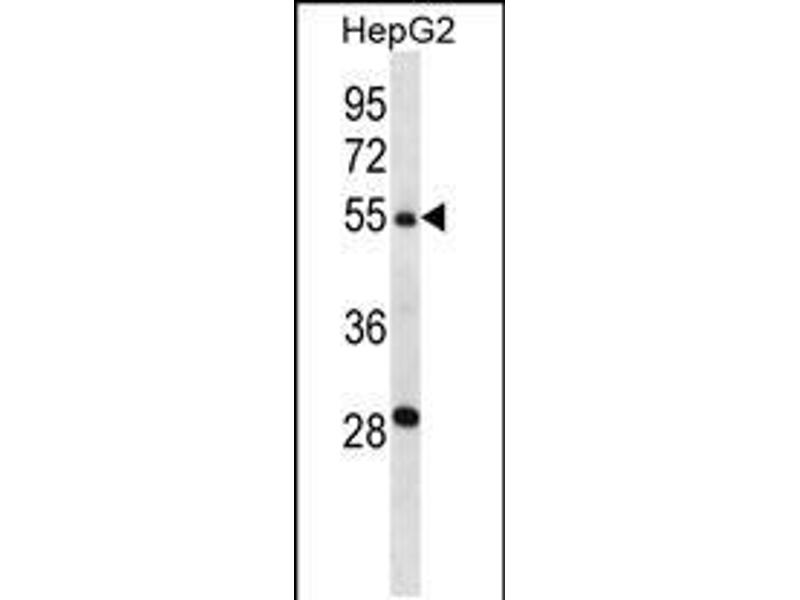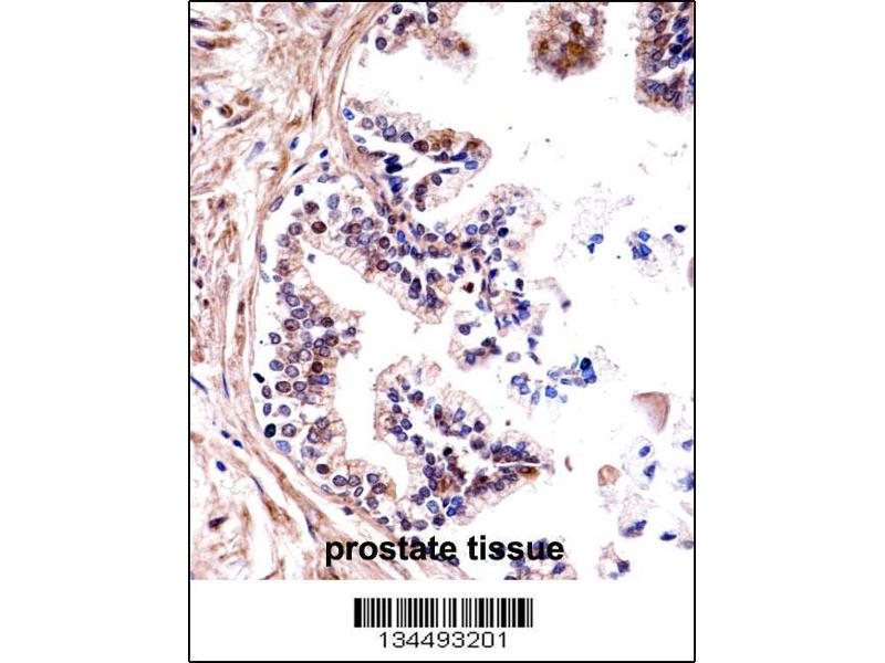 This TMPRSS13 antibody is generated from rabbits immunized with a KLH conjugated synthetic peptide between 431-460 amino acids from the C-terminal region of human TMPRSS13.