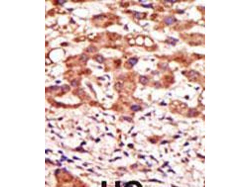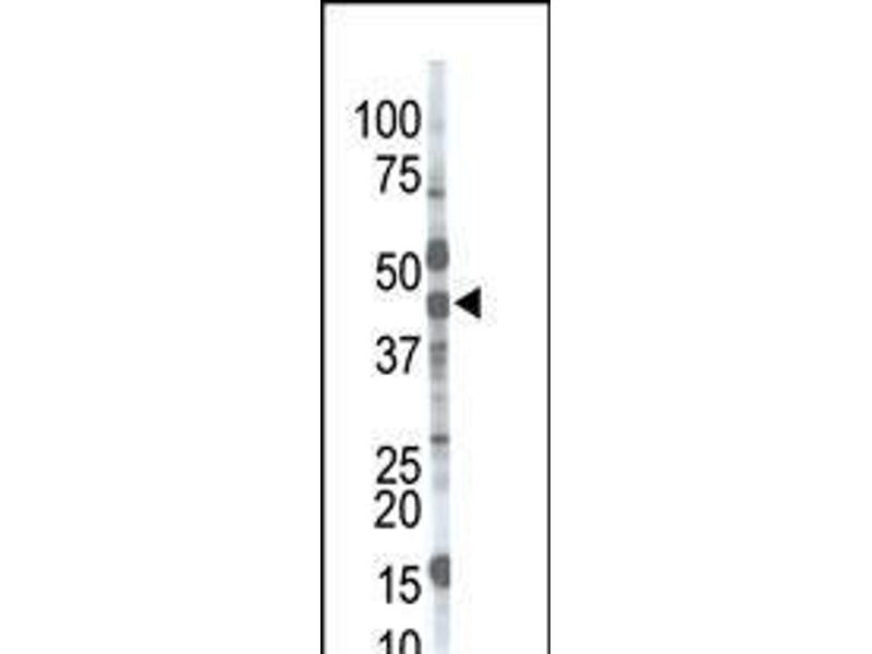 This MGAT1 antibody is generated from rabbits immunized with a KLH conjugated synthetic peptide between 16-46 amino acids from the N-terminal region of human MGAT1.