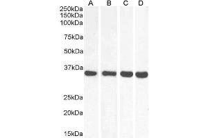 Western Blot: Approx 35 kDa band observed in lysates of cell lines HeLa, HepG2 and NIH3T3 (calculated MW of 35.5 kDa according to Human NP_005909.2 and 35.6 kDa according to Mouse NP_032643.2 ). Recommended concentration: 0.1-0.3 μg/mL. Primary incubation wa
