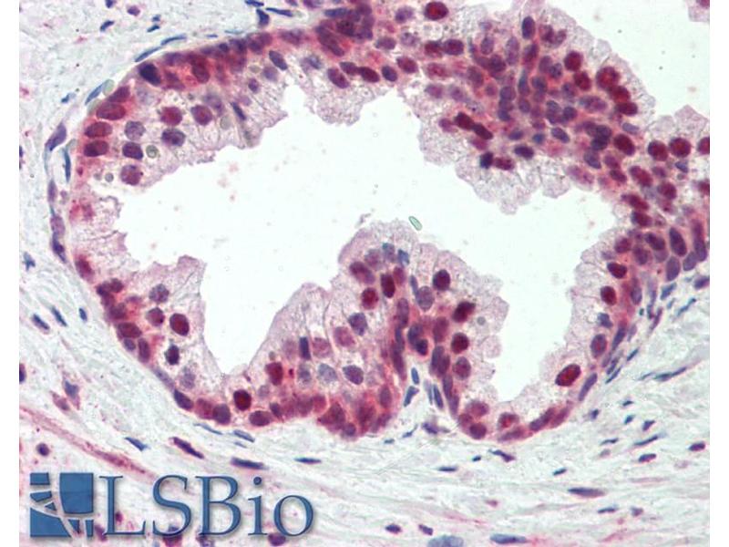 Immunohistochemistry: Paraffin embedded Human Prostate. Recommended concentration: 5 μg/mL.