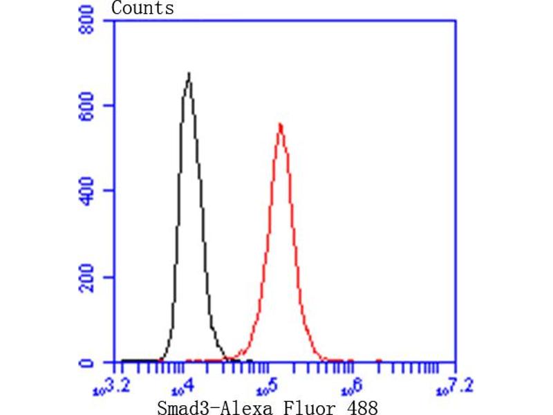 Background: Smad3 is a 50 kDa member of a family of proteins that act as key mediators of TGF beta superfamily signaling in cell proliferation, differentiation and development. The Smad family is divided into three subclasses: receptor regulated Smads, activin/TGF beta receptor regulated (Smad2 and 3) or BMP receptor regulated (Smad 1, 5, and 8), the common partner, (Smad4) that functions via its interaction to the various Smads, and the inhibitory Smads, (Smad6 and 7). Activated Smad3 oligomerizes with Smad4 upon TGF beta stimulation and translocates as a complex into the nucleus, allowing its binding to DNA and transcription factors. Phosphorylation of the two TGF beta dependent serines 423 and 425 in the C terminus of Smad3 is critical for Smad3 transcriptional activity and TGF beta signaling.