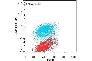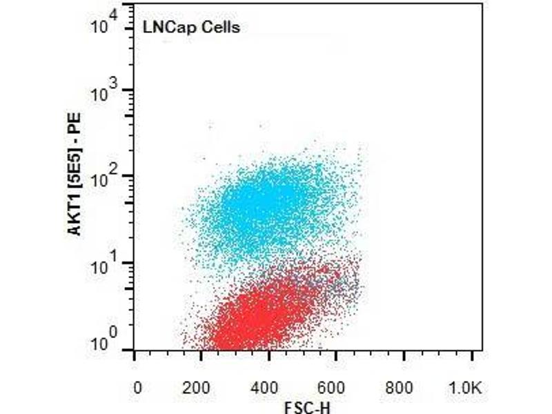 Application Note: Anti-AKT1 PE Antibody is tested for Flow Cytometry, This antibody is suitable for ELISA, immunohistochemistry, and western blotting. Expect a band approximately 56 kDa in size corresponding to AKT1 protein by western blotting in the appropriate cell lysate or extract. This monoclonal antibody reacts with human AKT. Specific conditions for reactivity should be optimized by the end user. For immunohistochemistry we recommend the use of fresh frozen tissues. Attempts at staining paraffin-embedded formalin fixed tissues were negative. No pre-treatment of sample is required.