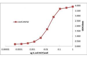 Immunogen: Anti-HMW E.Coli Host Cell Proteins Antibody was prepared by repeated immunizations with a mixture high molecular weight (HMW) proteins from E.Coli.