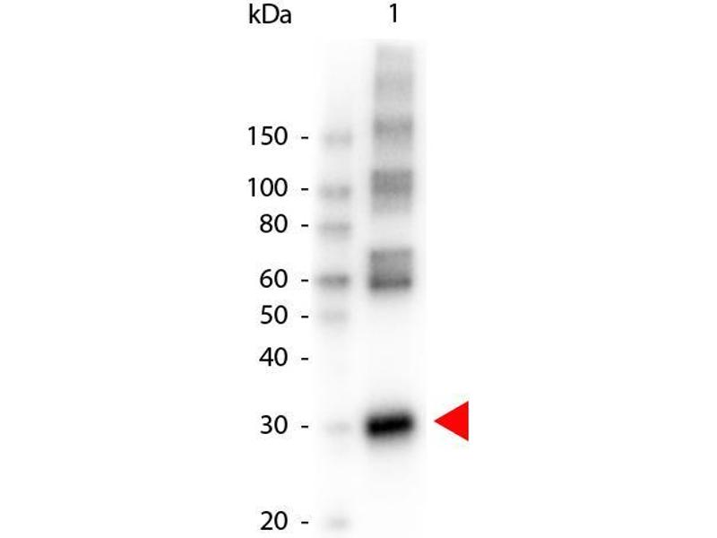 Application Note: Anti-Asparaginase Peroxidase conjugated antibody has been tested by western blotting to detect a single band of the expected apparent molecular weight and by ELISA. Researchers should determine optimal titers for applications that are not stated below.