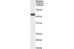 Western Blot: Approx 55 kDa band observed in HeLa lysate (calculated MW of 55.2 kDa according to NP_055121.1). Recommended concentration: 0.1-0.3 μg/mL.