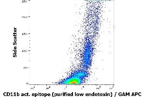 The mouse monoclonal antibody CBRM1/5 recognizes an activation-dependent epitope on extracellular part of CD11b (Mac-1alpha), a 165-170 kDa type 1 transmembrane protein mainly expressed on monocytes, granulocytes and NK-cells. The antibody recognizes a subset of CD11b molecules on neutrophils and monocytes activated with chemoattractants or phorbol esters and it does not recognize CD11b on non-activated cells.