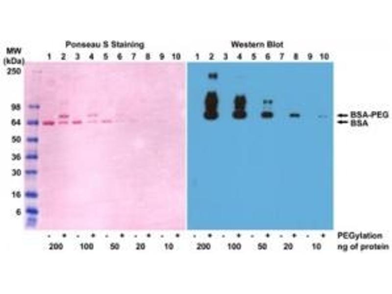 - This antibody reacts to the methoxy group of Polyethylene glycol (PEG). It is specific for methoxypoly(ethylene glycol).