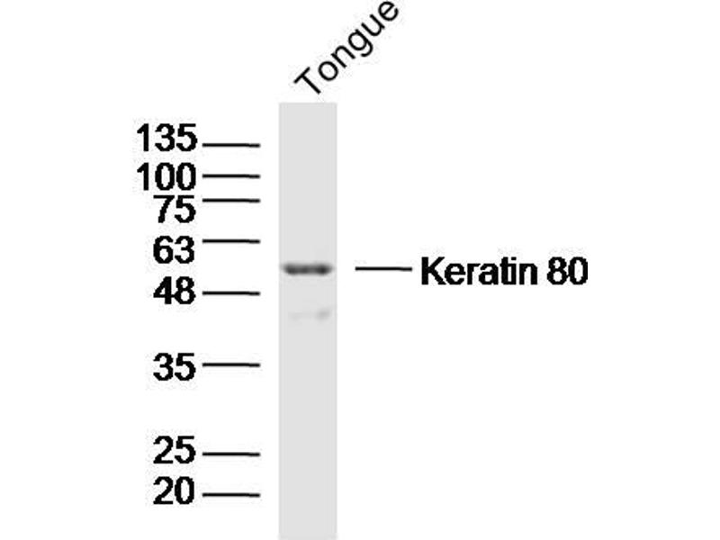 Synonyms: CK 80, CK-80, CK80, Cytokeratin 80, Cytokeratin-80, K 80, K2C80_HUMAN, K80, KB20, Keratin 80, Keratin, Keratin-80, KRT 80, Krt80, type II cytoskeletal 80, Type II keratin, Type-II keratin Kb20.