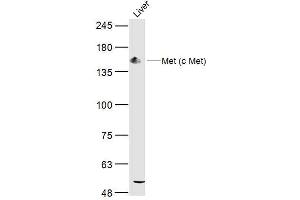 Background: c-Met, a member of the tyrosine kinase superfamily, is the receptor for hepatocyte growth factor, also known as scatter factor (HGF/SF). The mature c-Met protein is a disulfide-linked heterodimer with Mr=190 kDa composed of a heavily glycosylated alpha subunit that is completely extracellular in localization, and a beta subunit comprising an extracellular ligand binding domain, a single transmembrane domain, and a cytoplasmic tyrosine kinase domain. Cells expressing c-Met include epithelial cells, endothelial cells, blood cells of various types, and glomerular mesenchymal cells. HGF/SF binding to c-Met stimulates receptor dimerization and the phosphorylation of numerous residues within the receptors cytoplasmic domain. Signaling proteins that are phosphorylated and/or localized in response to c-Met phosphorylation include: Grb2, Shc, Cbl, Crk, cortactin, paxillin, GAB1, PI3K, FAK, Src, Ras, ERK1 and 2, JNK, PLC gamma, AKT, and STAT3. HGF/SF stimulation of c-Met expressing cells enhances proliferation, migration, morphogenesis, and protease synthesis, characteristics that are associated with invasive cell phenotype. Many types of cancer exhibit sustained c-Met stimulation, overexpression, or mutation, including carcinomas of the colon, breast, ovary, lung, liver, prostate, thyroid, kidney, as well as melanomas and sarcomas. In addition to cancer studies, other research areas in which c-Met is under investigation include organogenesis, organ regeneration, angiogenesis and surgical wound healing.
