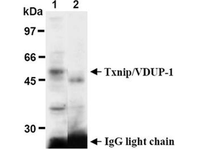- This antibody reacts with Txnip/VDUP1 (50 kDa) on Western blotting and Immunoprecipitation.