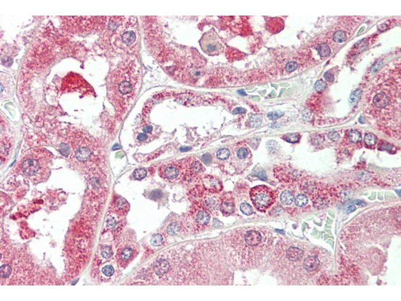 Immunohistochemistry: Paraffin embedded Human Prostate and Kidney. Recommended concentration: 5 μg/mL.