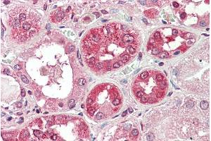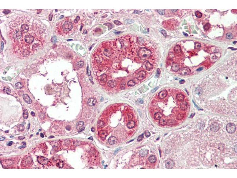 Immunohistochemistry: Paraffin embedded Human Kidney. Recommended concentration: 5 μg/mL.