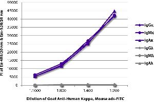 Working Dilutions: ELISA AP conjugate 1:2,000 - 1:4,000 HRP conjugate 1:4,000 - 1:8,000 BIOT conjugate 1:5,000 - 1:20,000 FLISA FITC, TRITC, and TXRD conjugates 1:100 - 1:400 PE conjugate 1 g/mL Flow Cytometry Purified (UNLB) antibody 1 g/106 cells FITC and BIOT conjugates 1 g/106 cells PE conjugate 0.1 g/106 cells For flow cytometry, the suggested use of these reagents is in a final volume of 100 L