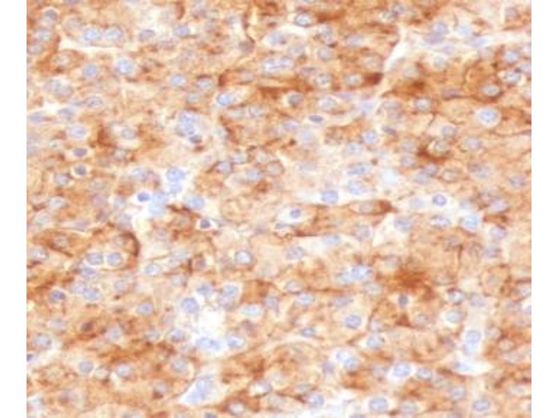 1. The prediluted format is supplied in a dropper bottle and is optimized for use in IHC. After epitope retrieval step (if required), drip mAb solution onto the tissue section and incubate at RT for 30 min.\. Immunohistochemistry (FFPE): 0.25-0.5 μg/mL for 30 min at RT,Prediluted IHC only format: incubate for 30 min at RT (1)