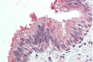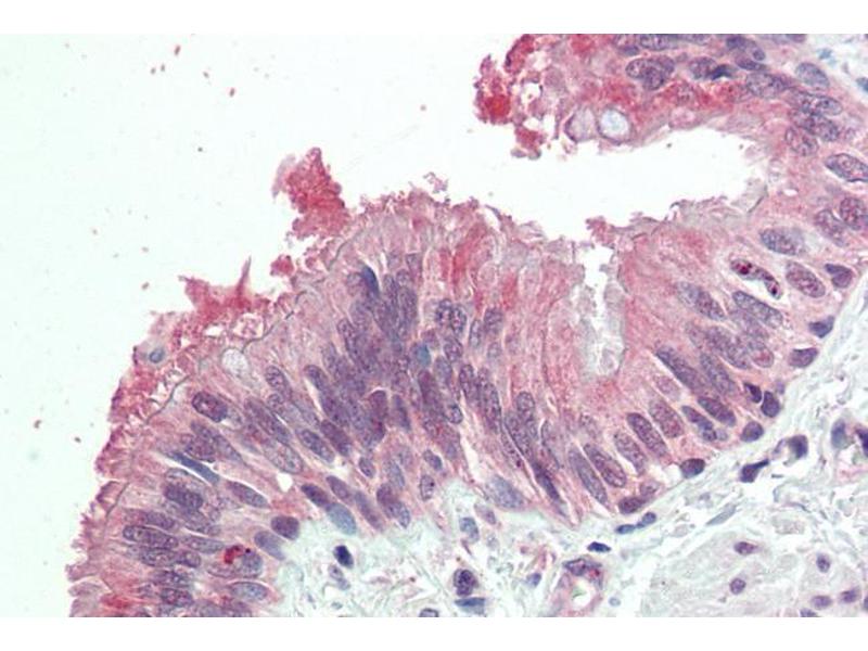 Immunohistochemistry: Paraffin embedded Human Lung (Bronchus). Recommended concentration: 5 μg/mL.