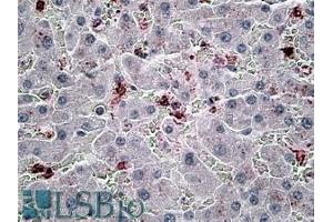 Immunohistochemistry: In paraffin embedded Human Liver shows local staining between the hepatocytes. Recommended concentration, 6-8 μg/mL.