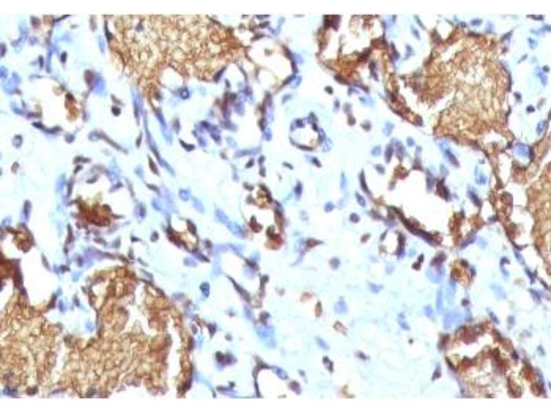 1. The prediluted format is supplied in a dropper bottle and is optimized for use in IHC. After epitope retrieval step (if required), drip mAb solution onto the tissue section and incubate at RT for 30 min.\. Immunohistochemistry (FFPE): 0.25-0.5 μg/mL for 30 min at RT,Prediluted IHC only format: incubate for 30 min at RT (1)