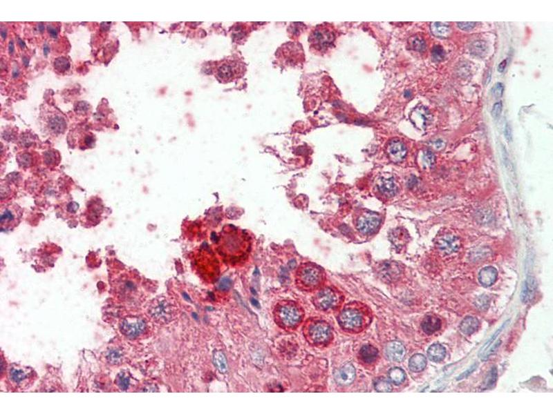 Immunohistochemistry: Paraffin embedded Human Testis. Recommended concentration: 3.75 μg/mL.