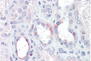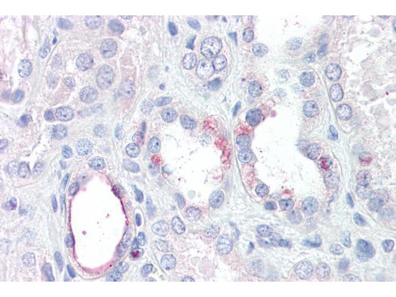 Immunohistochemistry: Paraffin embedded Human Kidney. Recommended concentration: 3.75 μg/mL.