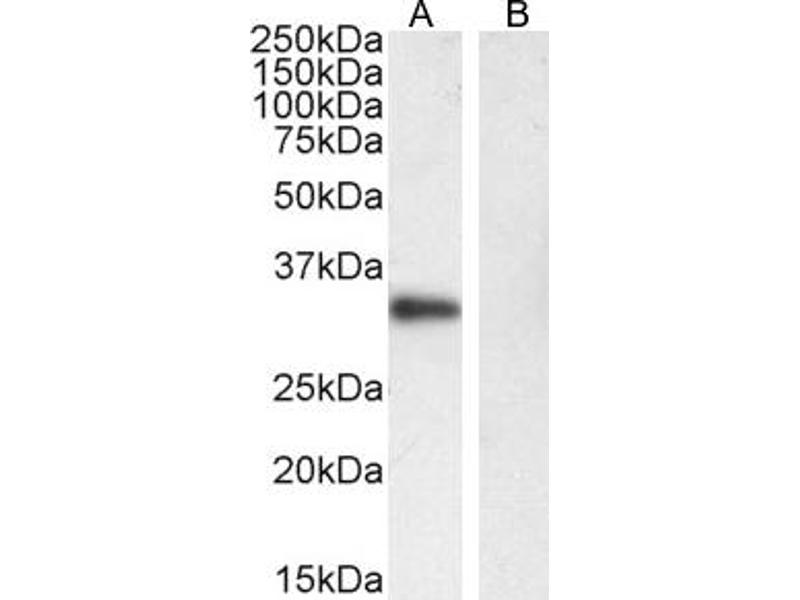 Western Blot: Approx 35 kDa band observed in lysates of Human Lymph Node and of cell line Daudi (calculated MW of 33.1 kDa according to NP_068769.2). Recommended concentration: 0.1-0.3 μg/mL. Primary incubation was 1 hour.