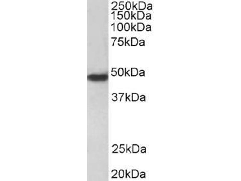 Western Blot: Approx 48 kDa band observed in lysates of cell line HeLa (calculated MW of 47.4 kDa according to NP_001983.2). Recommended concentration: 0.3-1 μg/mL. Primary incubation 1 hour at room temperature.