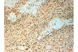 Immunohistochemistry: In paraffin embedded Human Spleen shows nuclear staining in select splenocytes. Recommended concentration: 2-6 μg/mL.