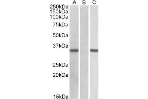 Western Blot: In transfected HEK293 transiently expressing Human CRISP2 (MYC and DYKDDDDK tagged), a band of approx. 35 kDa was observed. No bands were observed in mock-transfected HEK293 and the same band was observed using anti-myc tag antibody. Recomm