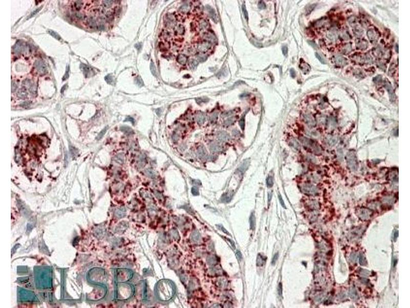 Immunohistochemistry: In paraffin embedded Human Breast shows mitochondrial staining in the epithelial cells of the ducts. Recommended concentration, 3-5 μg/mL.