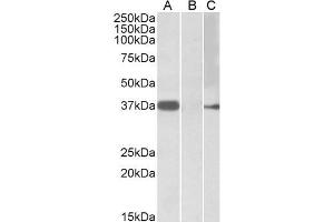 Western Blot: In transfected HEK293 transiently expressing full-length Human MYF6 (myc and DYKDDDDK tagged), a band of approx. 37 kDa was observed. No bands were observed in mock-transfected HEK293 and the same band was observed using anti-myc tag antibod