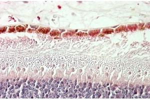 Immunohistochemistry: In paraffin embedded Human Retina shows staining of the Ganglion Cell Layer. Recommended concentration: 5-10 μg/mL.