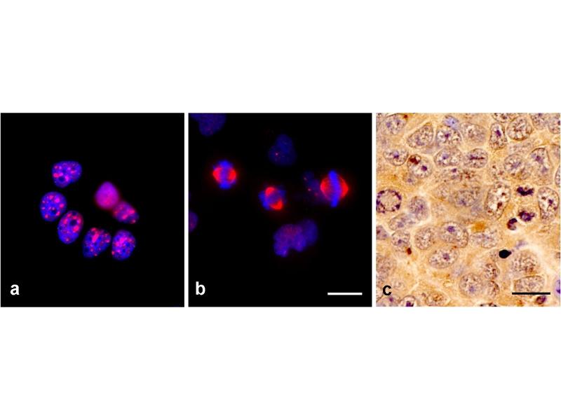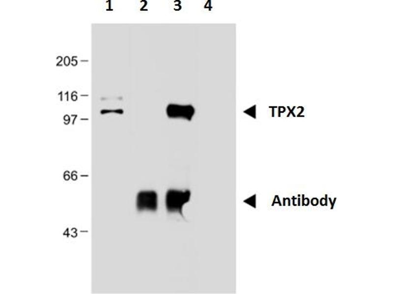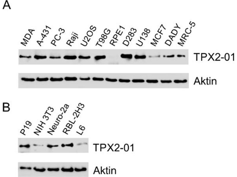 The mouse monoclonal antibody TPX2-01 recognizes the epitope EPFVPKKEKKS (aa 636-646 in human) of TPX2, a microtubule-associated intracellular critical regulator of mitosis, which is overexpressed in many types of tumors and is a marker of worse prognosis in various cancers.