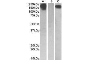 Western Blot: In transfected HEK293 transiently expressing full-length Human CSF1R (myc and DYKDDDDK tagged), a band of approx. 200 kDa was observed. No bands were observed in mock-transfected HEK293 and the same band was observed using anti-myc tag antib