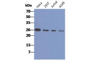 CACYBP (Calcyclin-binding protein) is primarily a nuclear protein that contains one CS domain and one SGS domain. CACYBP is believed to be involved in calcium-dependent ubiquitination and subsequent proteosomal degradation of target proteins. It most likely serves as a molecular bridge in ubiquitin E3 complexes. It also participates in the ubiquitin-mediated degradation of b-catenin. CACYBP is thought to be a potential inhibitor of cell growth and invasion in the gastric cancer cell through its effects on b-catenin protein expression and transcriptional activation of TCF/LEF.