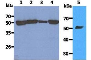 Tubulin is a major cytoskeleton component that has five distinct forms. Multiple beta Tubulin isoforms have been characterized and are expressed in mammalian tissues. Tubulin is the major constituent of microtubules. It binds two moles of GTP, one at an exchangeable site on the beta chain and one at a non-exchangeable site on the alpha-chain.