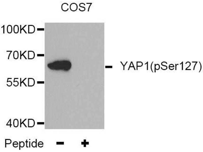 - Synthetic peptide. A phospho specific peptide corresponding to residues surrounding S127 of human YAP1.