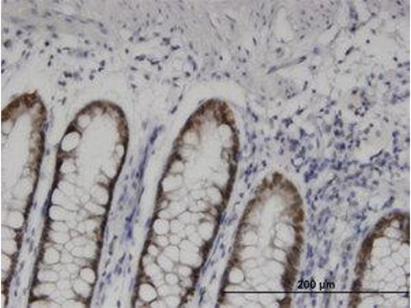 Usage: Immunohistochemistry: Formalin-fixed paraffin-embedded sections. Sandwich ELISA: Recombinant protein. Western Blot: Cell lysate, Recombinant protein. -