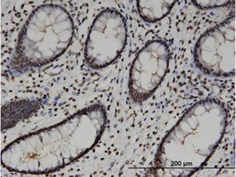 Usage: Immunohistochemistry: Formalin-fixed paraffin-embedded sections. Sandwich ELISA: Recombinant protein. Western Blot: Transfected lysate, Recombinant protein.