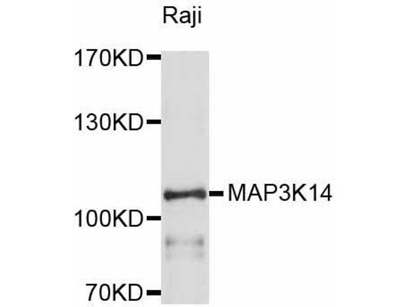 This anti-MAP3K14 antibody is a 兔 多克隆 antibody detecting MAP3K14 in WB. Suitable for 人.