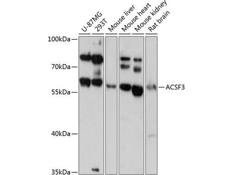 This gene encodes a member of the acyl-CoA synthetase family of enzymes that activate fatty acids by catalyzing the formation of a thioester linkage between fatty acids and coenzyme A. The encoded protein is localized to mitochondria, has high specificity for malonate and methylmalonate and possesses malonyl-CoA synthetase activity. Mutations in this gene are a cause of combined malonic and methylmalonic aciduria. Alternatively spliced transcript variants have been observed for this gene.,ACSF3,Cancer,Signal Transduction,Endocrine & Metabolism,Lipid Metabolism,Hydrolysis,Lipases,Cardiovascular,Lipids,ACSF3