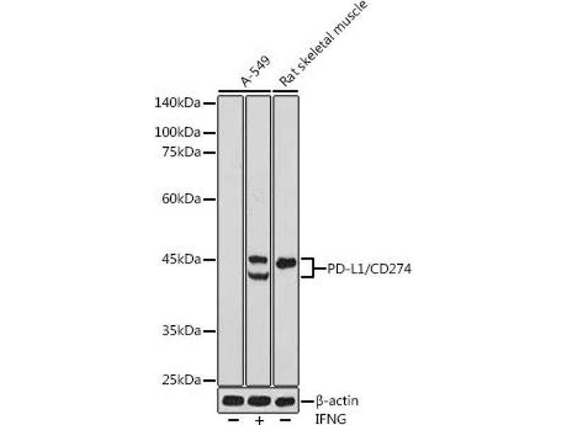 - This gene encodes an immune inhibitory receptor ligand that is expressed by hematopoietic and non-hematopoietic cells, such as T cells and B cells and various types of tumor cells. The encoded protein is a type I transmembrane protein that has immunoglobulin V-like and C-like domains. Interaction of this ligand with its receptor inhibits T-cell activation and cytokine production. During infection or inflammation of normal tissue, this interaction is important for preventing autoimmunity by maintaining homeostasis of the immune response. In tumor microenvironments, this interaction provides an immune escape for tumor cells through cytotoxic T-cell inactivation. Expression of this gene in tumor cells is considered to be prognostic in many types of human malignancies, including colon cancer and renal cell carcinoma. Alternative splicing results in multiple transcript variants.,B7-H,B7H1,PDL1,PD-L1,PDCD1L1,PDCD1LG1,CD274,Immunology & Inflammation,CD markers,PD-L1