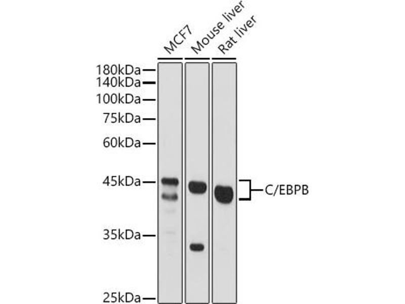 - A synthetic peptide corresponding to a sequence within amino acids 150-250 of human C/EBPB (NP_005185.2).