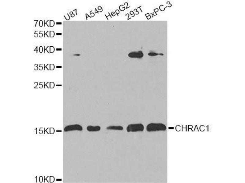 - CHRAC1 is a histone-fold protein that interacts with other histone-fold proteins to bind DNA in a sequence-independent manner. These histone-fold protein dimers combine within larger enzymatic complexes for DNA transcription, replication, and packaging.[supplied by OMIM, Apr 2004],CHRAC1,CHARC1,CHARC15,CHRAC-1,CHRAC-15,CHRAC15,YCL1,Epigenetics & Nuclear Signaling,Transcription Factors,Chromatin Remodeling,CHRAC1