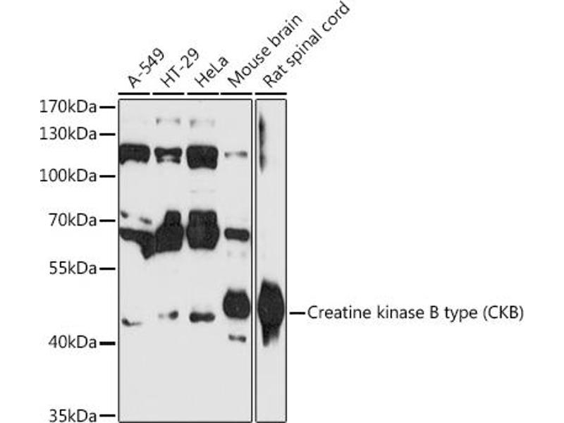 The protein encoded by this gene is a cytoplasmic enzyme involved in energy homeostasis. The encoded protein reversibly catalyzes the transfer of phosphate between ATP and various phosphogens such as creatine phosphate. It acts as a homodimer in brain as well as in other tissues, and as a heterodimer with a similar muscle isozyme in heart. The encoded protein is a member of the ATP:guanido phosphotransferase protein family. A pseudogene of this gene has been characterized.,CKB,B-CK,BCK,CKBB,HEL-211,HEL-S-29,Cancer,Signal Transduction,Kinase,Endocrine & Metabolism,Neuroscience,CKB
