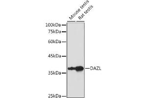 - The DAZ (Deleted in AZoospermia) gene family encodes potential RNA binding proteins that are expressed in prenatal and postnatal germ cells of males and females. The protein encoded by this gene is localized to the nucleus and cytoplasm of fetal germ cells and to the cytoplasm of developing oocytes. In the testis, this protein is localized to the nucleus of spermatogonia but relocates to the cytoplasm during meiosis where it persists in spermatids and spermatozoa. Transposition and amplification of this autosomal gene during primate evolution gave rise to the DAZ gene cluster on the Y chromosome. Mutations in this gene have been linked to severe spermatogenic failure and infertility in males. Two transcript variants encoding different isoforms have been found for this gene.,DAZL,DAZH,DAZL1,DAZLA,SPGYLA,Epigenetics & Nuclear Signaling,Cell Biology & Developmental Biology,Stem Cells,Germline Stem Cells,DAZL