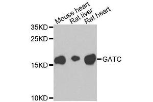 - Allows the formation of correctly charged Gln-tRNA(Gln through the transamidation of misacylated Glu-tRNA(Gln in the mitochondria. The reaction takes place in the presence of glutamine and ATP through an activated gamma-phospho-Glu-tRNA(Gln.,GATC,15E1.2,Endocrine & Metabolism,Mitochondrial metabolism,GATC