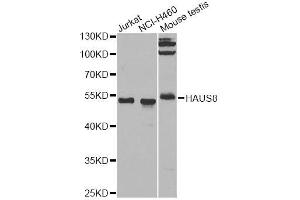 - HAUS8 is 1 of 8 subunits of the 390-kD human augmin complex, or HAUS complex. The augmin complex was first identified in Drosophila, and its name comes from the Latin verb 'augmentare,' meaning 'to increase.' The augmin complex is a microtubule-binding complex involved in microtubule generation within the mitotic spindle and is vital to mitotic spindle assembly (Goshima et al., 2008 [PubMed 18443220]; Uehara et al., 2009 [PubMed 19369198]).[supplied by OMIM, Jun 2010],HAUS8;DGT4;HICE1;NY-SAR-48,Cancer,Tumor immunology,Tumor-associated antigens,Cell Biology & Developmental Biology,Cell Cycle,Centrosome,Immunology & Inflammation,HAUS8