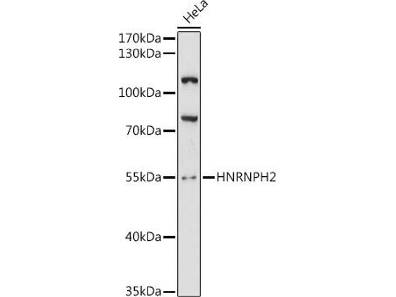 This gene belongs to the subfamily of ubiquitously expressed heterogeneous nuclear ribonucleoproteins (hnRNPs). The hnRNPs are RNA binding proteins and they complex with heterogeneous nuclear RNA (hnRNA). These proteins are associated with pre-mRNAs in the nucleus and appear to influence pre-mRNA processing and other aspects of mRNA metabolism and transport. While all of the hnRNPs are present in the nucleus some seem to shuttle between the nucleus and the cytoplasm. The hnRNP proteins have distinct nucleic acid binding properties. The protein encoded by this gene has three repeats of quasi-RRM domains that binds to RNAs. It is very similar to the family member HNRPH1. This gene is thought to be involved in Fabray disease and X-linked agammaglobulinemia phenotype. Alternative splicing results in multiple transcript variants encoding the same protein. Read-through transcription between this locus and the ribosomal protein L36a gene has been observed.,HNRNPH2,FTP3,HNRPH2,MRXSB,NRPH2,Epigenetics & Nuclear Signaling,RNA Binding,HNRNPH2
