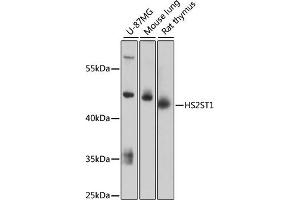 Heparan sulfate biosynthetic enzymes are key components in generating a myriad of distinct heparan sulfate fine structures that carry out multiple biologic activities. This gene encodes a member of the heparan sulfate biosynthetic enzyme family that transfers sulfate to the 2 position of the iduronic acid residue of heparan sulfate. The disruption of this gene resulted in no kidney formation in knockout embryonic mice, indicating that the absence of this enzyme may interfere with the signaling required for kidney formation. Two alternatively spliced transcript variants that encode different proteins have been found for this gene.,HS2ST1,dJ604K5.2,Signal Transduction,HS2ST1
