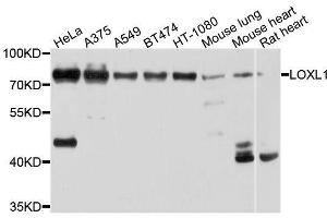 - This gene encodes a member of the lysyl oxidase family of proteins. The prototypic member of the family is essential to the biogenesis of connective tissue, encoding an extracellular copper-dependent amine oxidase that catalyzes the first step in the formation of crosslinks in collagen and elastin. The encoded preproprotein is proteolytically processed to generate the mature enzyme. A highly conserved amino acid sequence at the C-terminus end appears to be sufficient for amine oxidase activity, suggesting that each family member may retain this function. The N-terminus is poorly conserved and may impart additional roles in developmental regulation, senescence, tumor suppression, cell growth control, and chemotaxis to each member of the family. Mutations in this gene are associated with exfoliation syndrome.,LOXL1,LOL,LOXL,Cancer,Signal Transduction,Cell Biology & Developmental Biology,Endocrine & Metabolism,Amino acid metabolism,LOXL1
